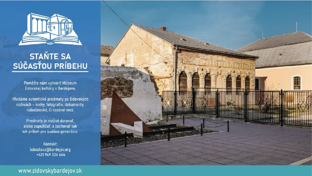 V Bardejove pripravujeme vznik Múzea židovskej kultúry, ktoré by malo vzniknúť v jedinečnom priestore Židovského suburbia (pamiatka UNESCO). Aby sme mohli vytvoriť autentickú a hodnotnú expozíciu, potrebujeme aj vašu pomoc.